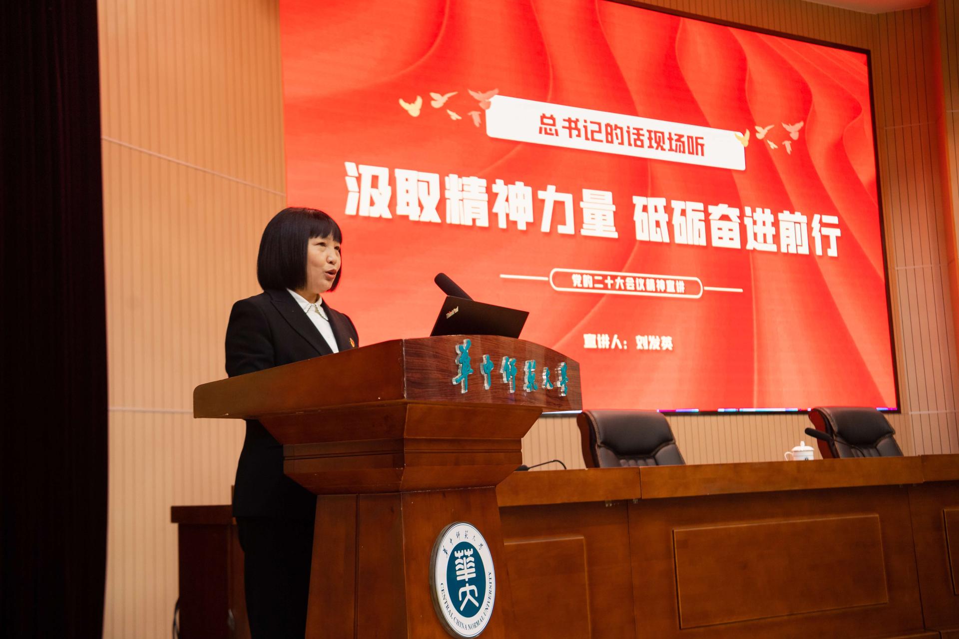 会上,党的二十大代表、长阳县花坪小学副校长刘发英,华中农业大学马克思主义学院副教授刘双,武汉大学水利水电学院2022级水工结构工程专业博士生唐嘉博,【星空】官网优秀学生宣讲小分队,为与会代表展示了宣讲内容。