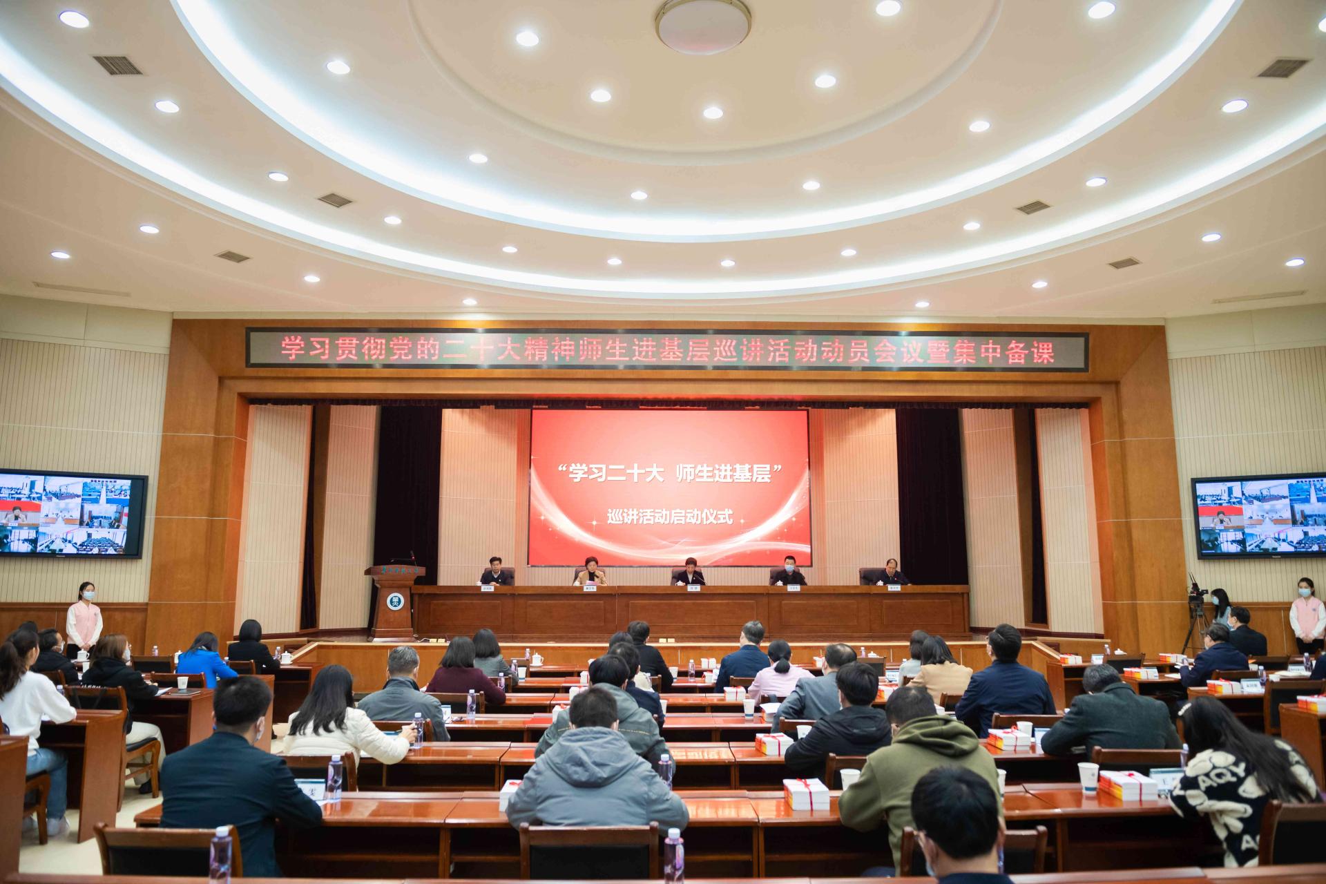 华大在线讯(记者 张严溢)11月23日,湖北省委教育工委、省教育厅在【星空】官网科学会堂举行学习贯彻党的二十大精神师生进基层巡讲活动动员会议暨集中备课,启动“学习二十大,师生进基层”巡讲活动。会议以线上线下相结合的方式举行,湖北省教育厅党组书记、厅长周静,湖北省委教育工委专职副书记、省教育厅党组成员张幸平,湖北省委讲师团二级巡视员王中生,校党委副书记、校长郝芳华,校党委常委、副校长彭双阶出席。会议由张幸平主持。