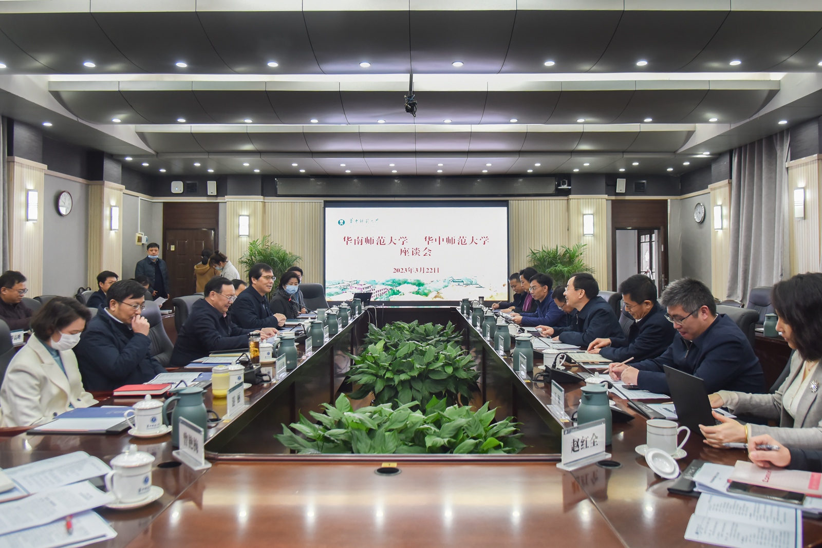 华大在线讯(见习记者 余佳仪)3月22日,华南师范大学党委书记王斌伟,党委副书记王岩等一行来访,与校党委书记夏立新,校党委副书记陈迪明等在行政楼一楼会议室座谈。座谈会由陈迪明主持。