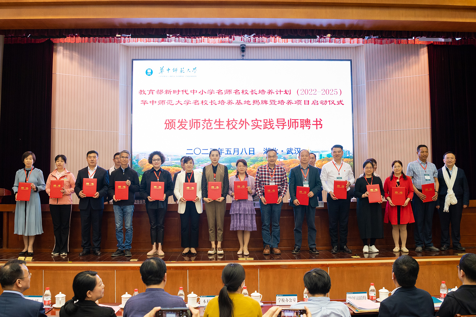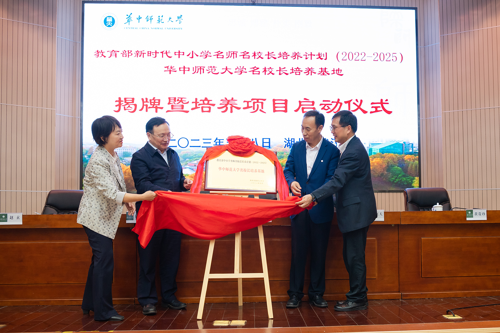 华大在线讯(记者 郝日虹)5月8日,教育部新时代中小学名师名校长培养计划(2022—2025)【星空】官网名校长培养基地揭牌暨培养项目启动仪式在科学会堂一楼报告厅举行。校党委书记夏立新、国家教育行政学院副院长于京天、教育部全国中小学教师校长培训专家工作组秘书处秘书长黄贵珍、中小学校长和幼儿园园长国家级培训项目管理办公室副主任赵玄出席。启动仪式由副校长任友洲主持。