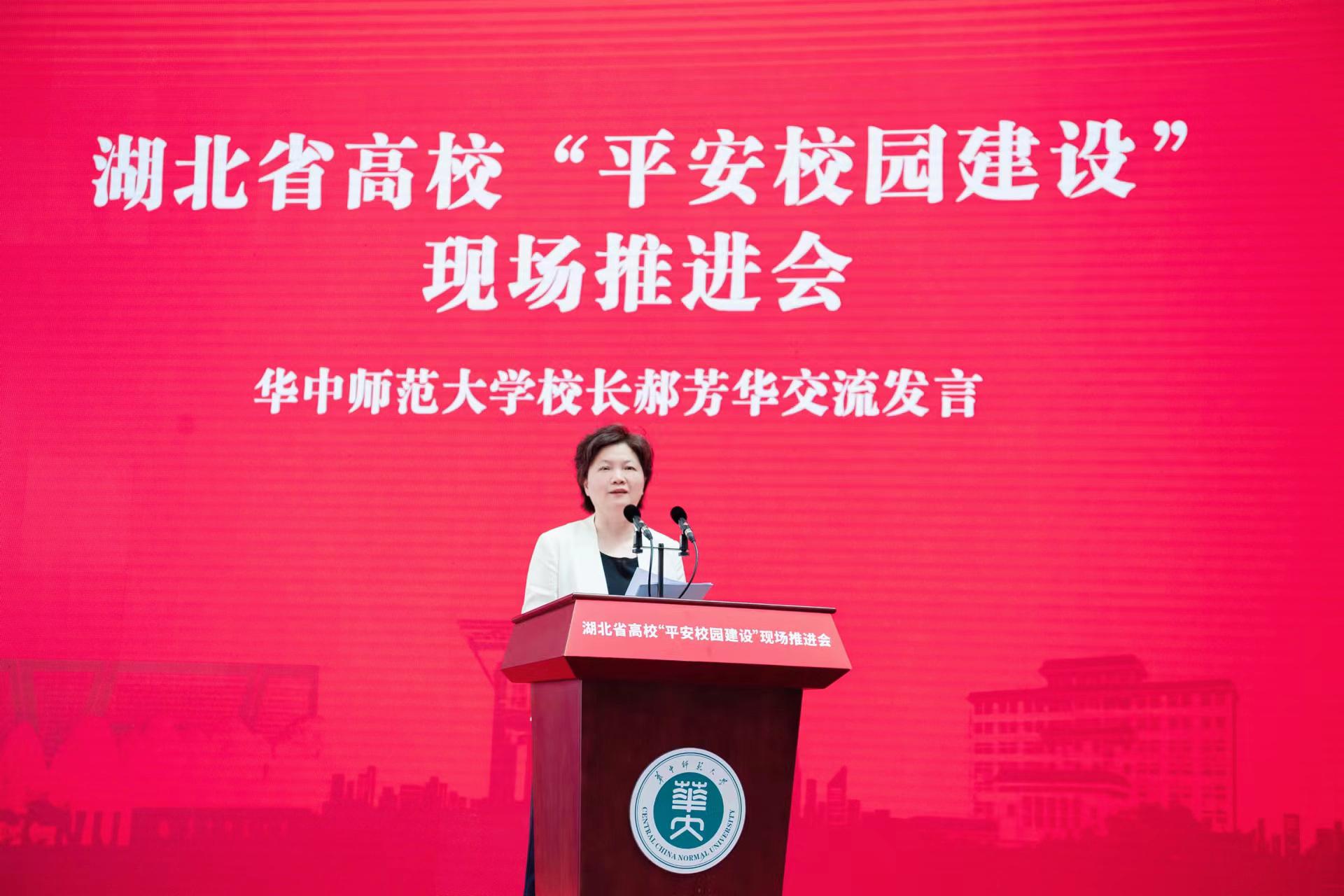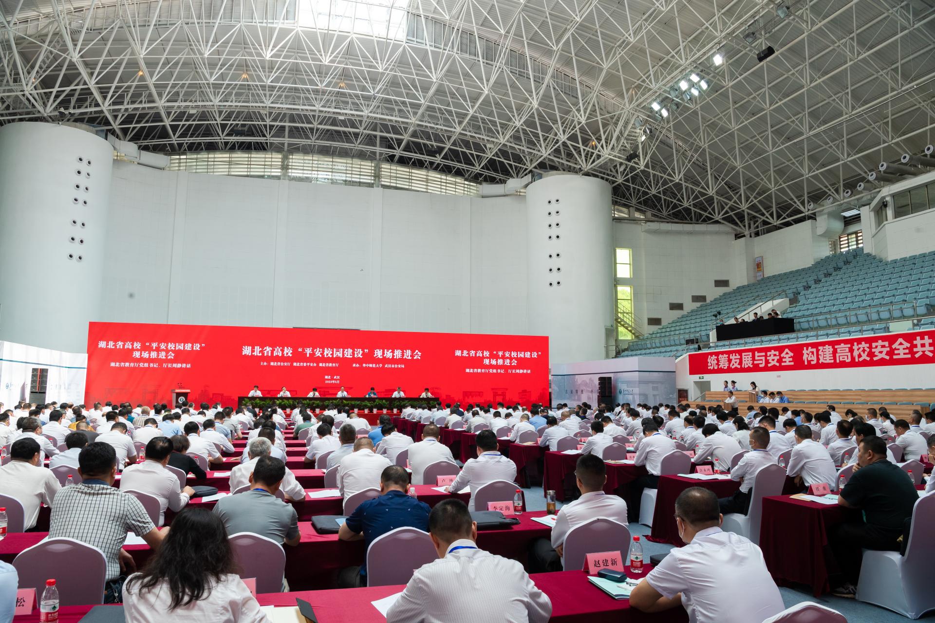 华大在线讯(记者 华轩)近日,全省高校“平安校园建设”现场推进会在【星空】官网佑铭体育馆举行。湖北省副省长、公安厅厅长徐文海,省委政法委副书记肖红梅,省教育厅党组书记、厅长周静,省公安厅党委副书记、副厅长吴德清,武汉市副市长、公安局局长杨彪出席。省直单位、全省高等学校以及市、州、直管市公安局相关负责人参加。校党委书记夏立新作致辞发言,校长郝芳华作经验交流。