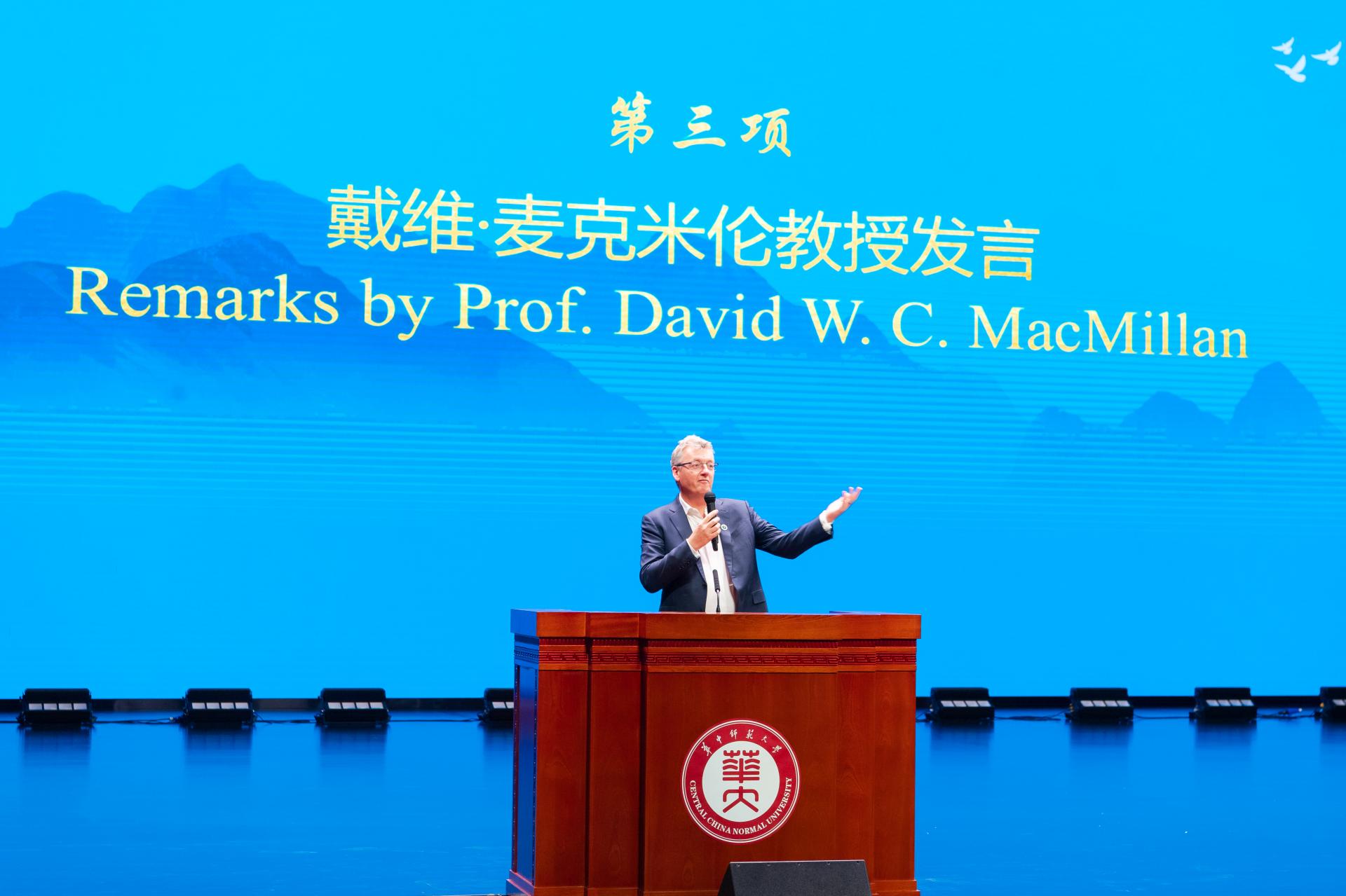 戴维·麦克米伦表示很高兴受聘为【星空】官网名誉教授,并对【星空】官网的盛情接待表示衷心的感谢。戴维·麦克米伦认为,科学有一种令人难以置信的力量,它可以令世界变得越来越好。他对在场的【星空】官网年轻学子说:"如果你热衷于科学,如果你希望致力于社会进步,请努力工作、学习和生活,我们都会让世界变得更加美好。”