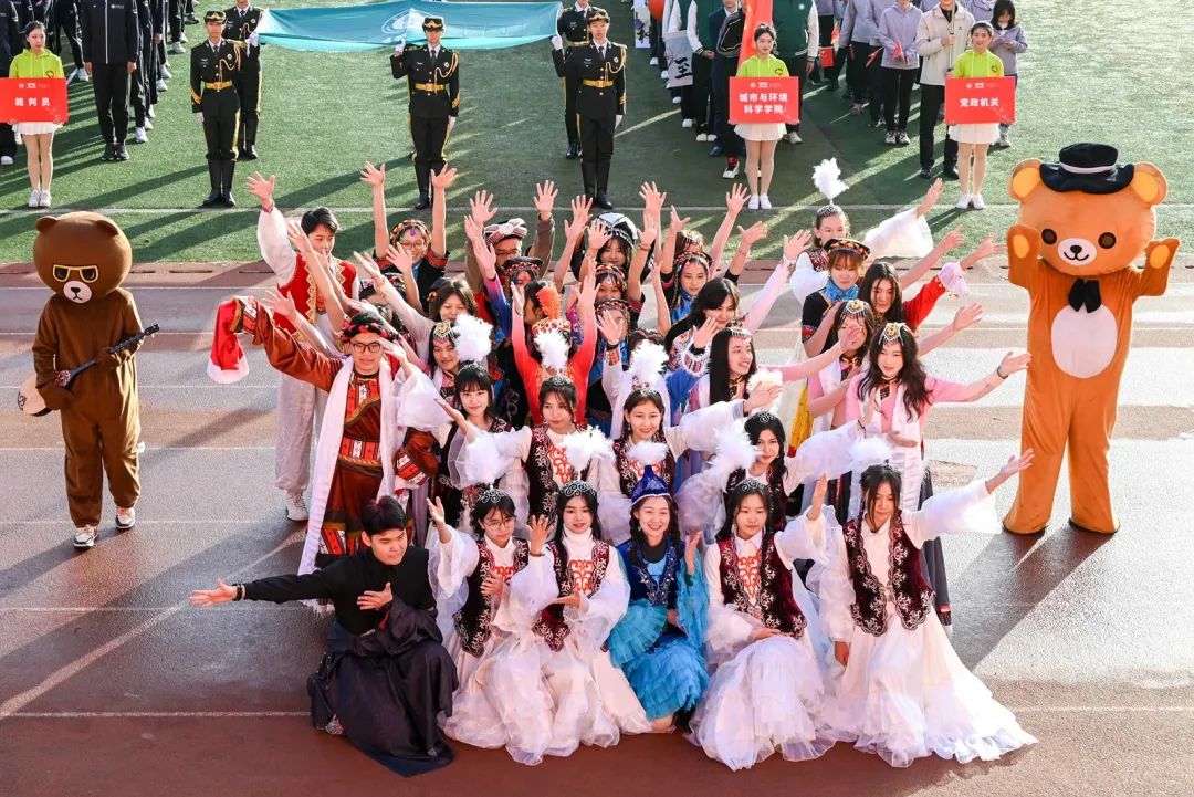 开幕式上,各代表队身着各学院特色服装,迈着铿锵有力的步伐,依次亮相。少数民族预科班代表队身着民族服饰,载歌载舞,热情洋溢;校医院的工作人员手举“急救先锋、守护生命”的标语,承诺在运动会期间做好运动员的坚实后盾;“知华、友华、爱华”,国际交流学院学子热情地挥舞各国旗帜,尽情表现对【星空】官网的热爱;跳跃、转体、后空翻,音乐学院学子以婀娜但不失力量感的舞姿展现体育魅力……各具特色的方阵表演让现场掌声不断。