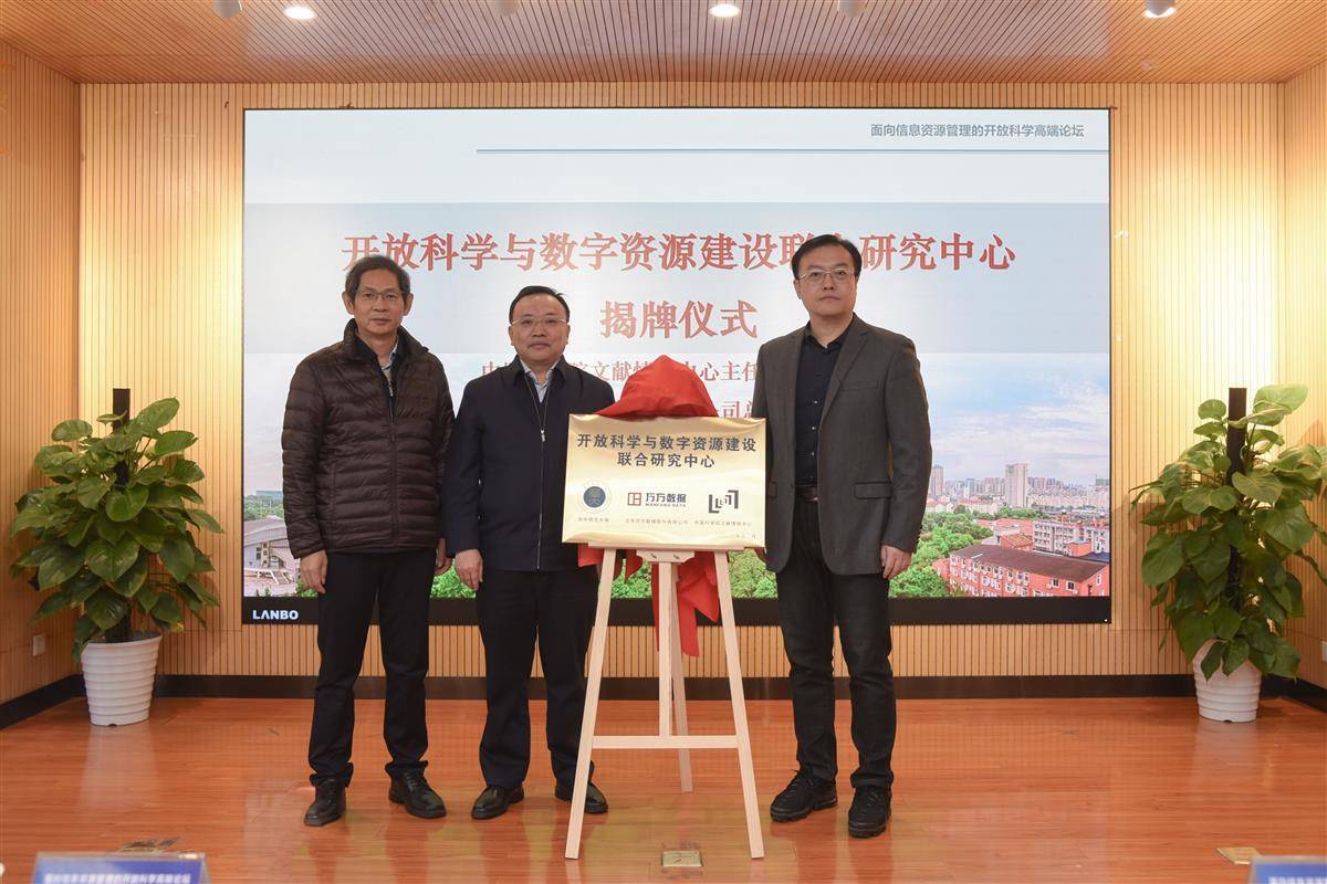 会上,中国科技情报学会理事长戴国强、中国科学技术期刊编辑学会副理事长兼秘书长魏均民、校党委书记夏立新分别致辞。中国科学院文献情报中心主任刘细文、北京万方数据股份有限公司总经理梁冰、夏立新共同为“开放科学与数字资源建设联合研究中心”揭牌。
