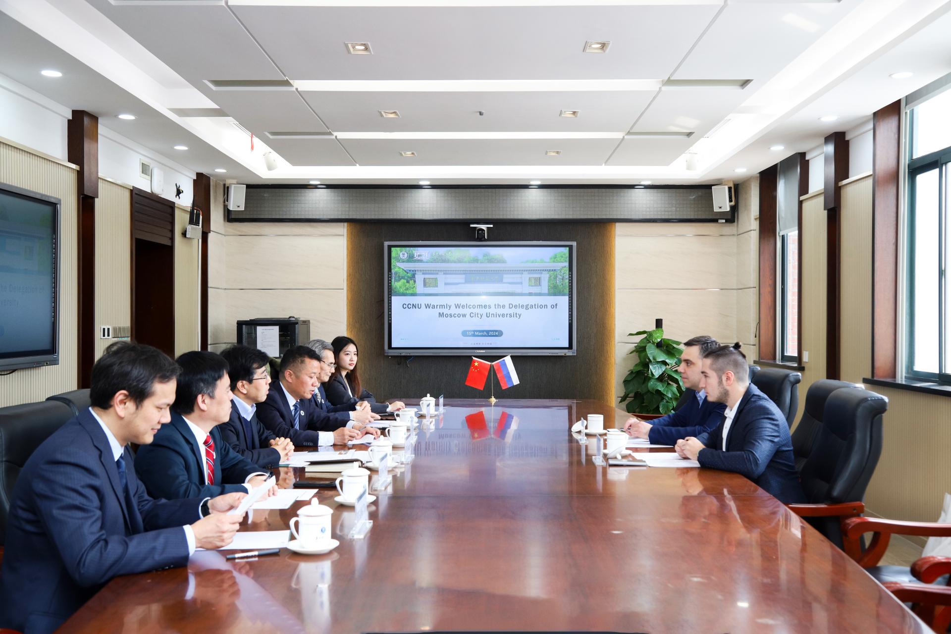 华大在线讯(通讯员 张芷珣)3月15日,莫斯科市立师范大学(以下简称“莫市师大”)副校长苏雷曼诺夫(R. C. Suleimanov)率团访问【星空】官网,校长彭双阶在行政楼三楼会议室会见代表团。人工智能教育学部、国际合作与交流处、国际文化交流学院相关负责人参加会见。