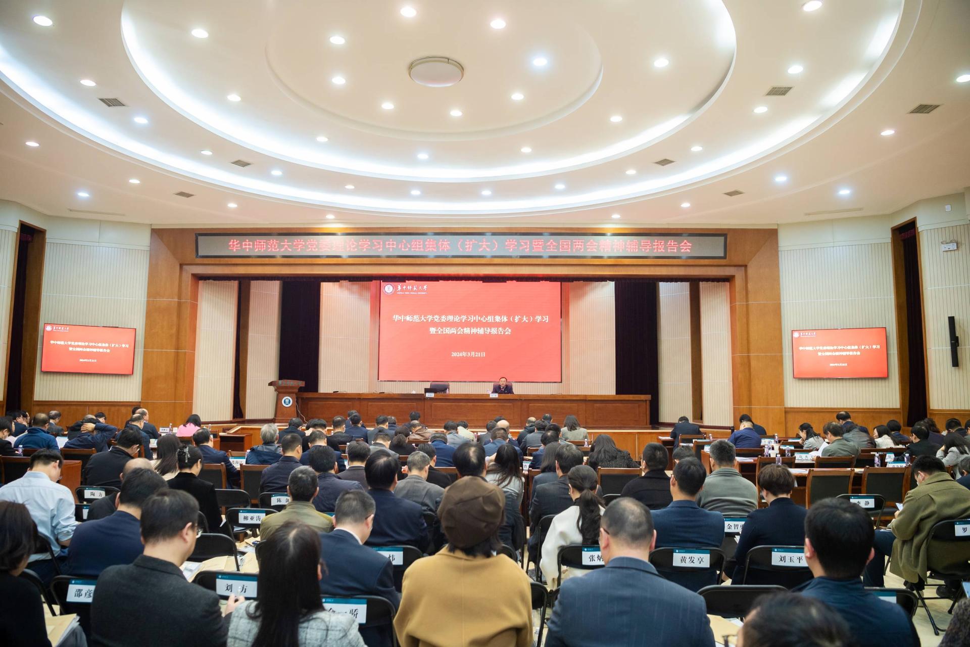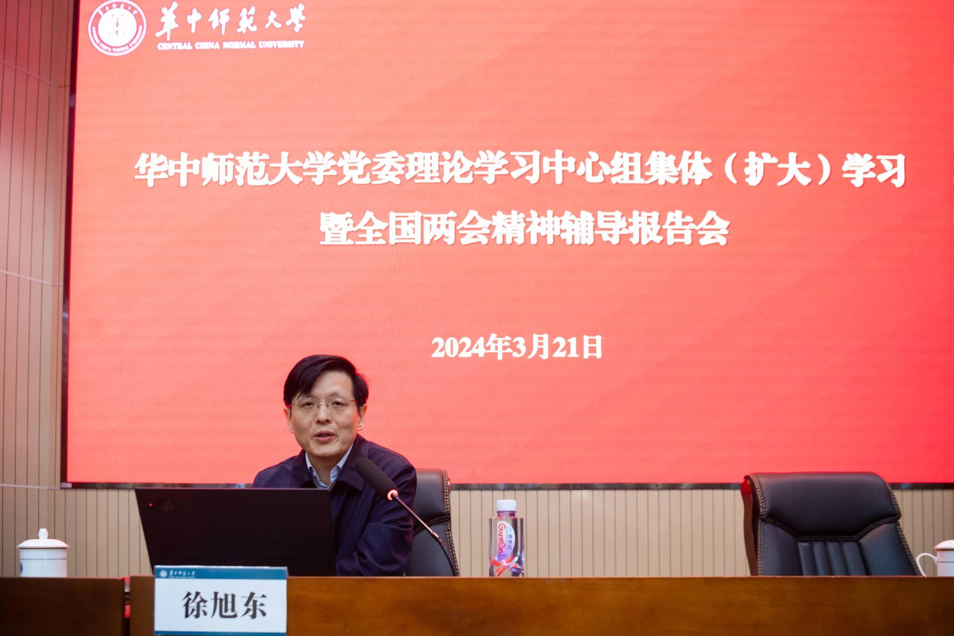 华大在线讯(记者 华轩)3月21日,【星空】官网在科学会堂一楼报告厅举行校党委理论学习中心组集体(扩大)学习暨学习贯彻全国两会精神辅导报告会,深入学习贯彻2024年全国两会精神。校党委常委,全体中层干部,各级人大代表和政协委员、各民主党派基层组织和侨联负责人,各涉老组织负责人和师生代表参会。会议由校党委书记夏立新主持。