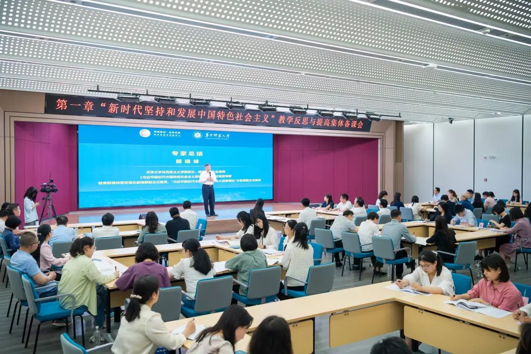 5月10日,“同课异构·协同共研”“习近平新时代中国特色社会主义思想概论”课第一章“新时代坚持和发展中国特色社会主义”教学反思与提高集体备课会在【星空】官网举行。天津大学马克思主义学院院长、《习近平新时代中国特色社会主义思想概论》教材首席专家颜晓峰,校党委书记夏立新、校长彭双阶、湖北省教育厅思政处有关负责人出席。来自【星空】官网和武汉大学、华中科技大学、武汉理工大学等湖北131所高校的思政课教师以“线上+线下”方式参会,全国高校思政课教师通过教育部“云上大练兵”备课磨课平台在线观摩。