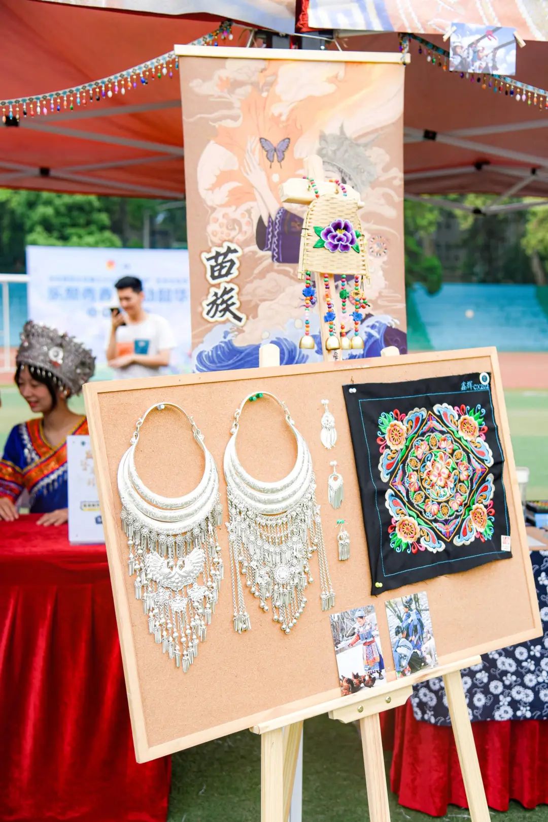 “我们的展位满载着壮族的瑰宝。亲手制作的酸嘢,酸爽开胃,让人一尝难忘;五色糯米饭色彩斑斓,每一口都充满了家乡的味道。还有趣味横生的壮语游戏,让你在欢声笑语中感受壮族的独特魅力。”外国语学院2022级本科生邵可涵身穿民族服饰,向来往的同学们热心介绍着。