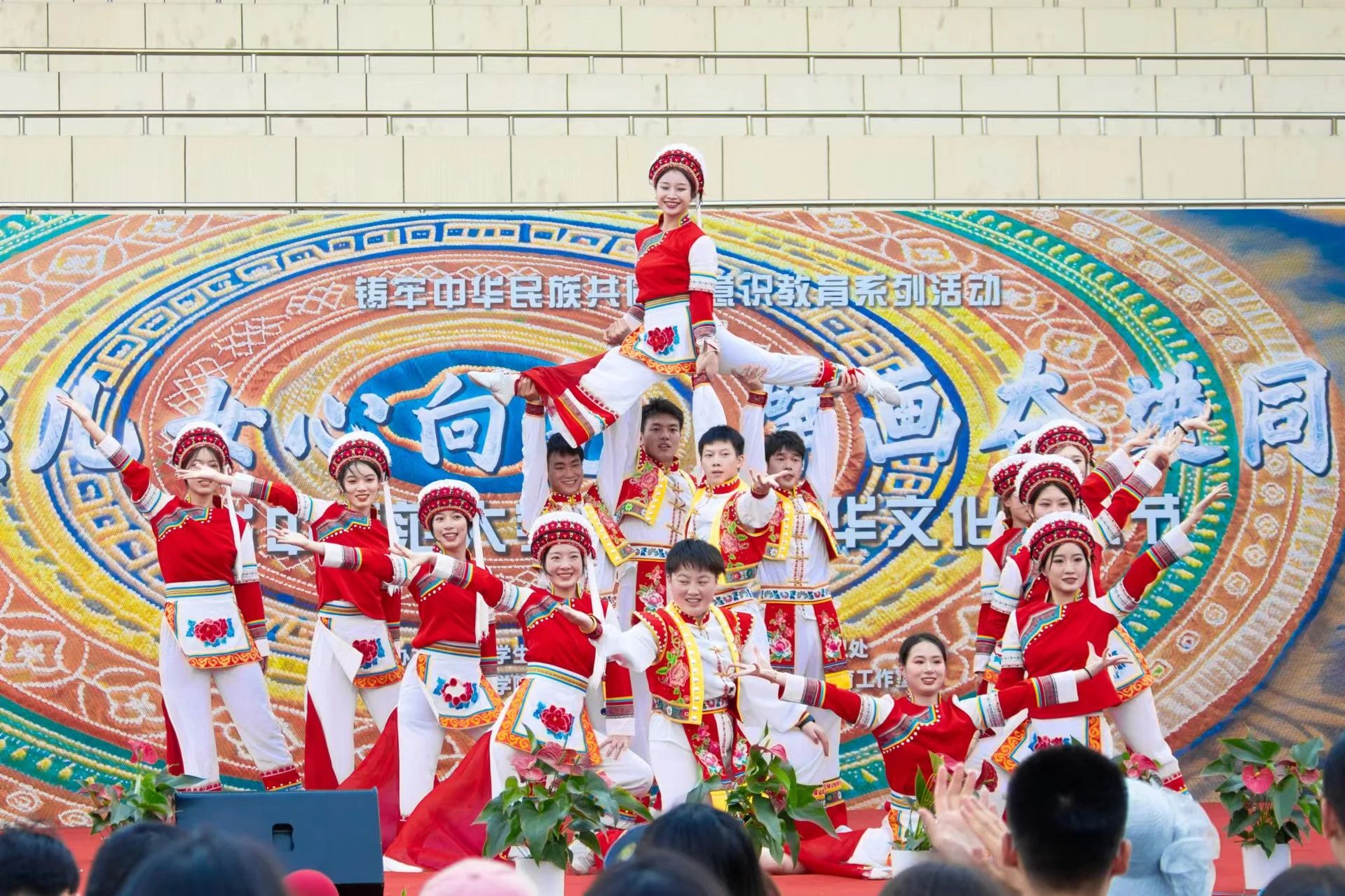 中华武术、师生民族广场舞、民族舞蹈、白族歌曲等师生服装美丽亮眼,舞姿翩翩,歌声悠扬。竹竿舞、板鞋竞速、押加、拉地弓等传统体育项目让观众在竞技中感受中华文化魅力。