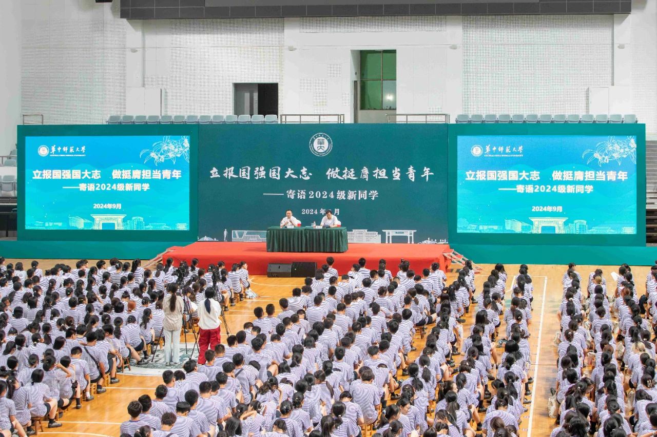 华大在线讯(通讯员 张晓冰)“如何适应好从高中生到大学生的身份转变,快速融入大学,走稳走好大学阶段,成长为对国家、对人民、对社会有用的人?”9月20日晚,校党委书记夏立新以《立报国强国大志,做挺膺担当青年》为题,在佑铭体育馆以“线上+线下”相结合的方式,为全体2024级新生讲授开学第一课。活动由副校长刘宏达主持。