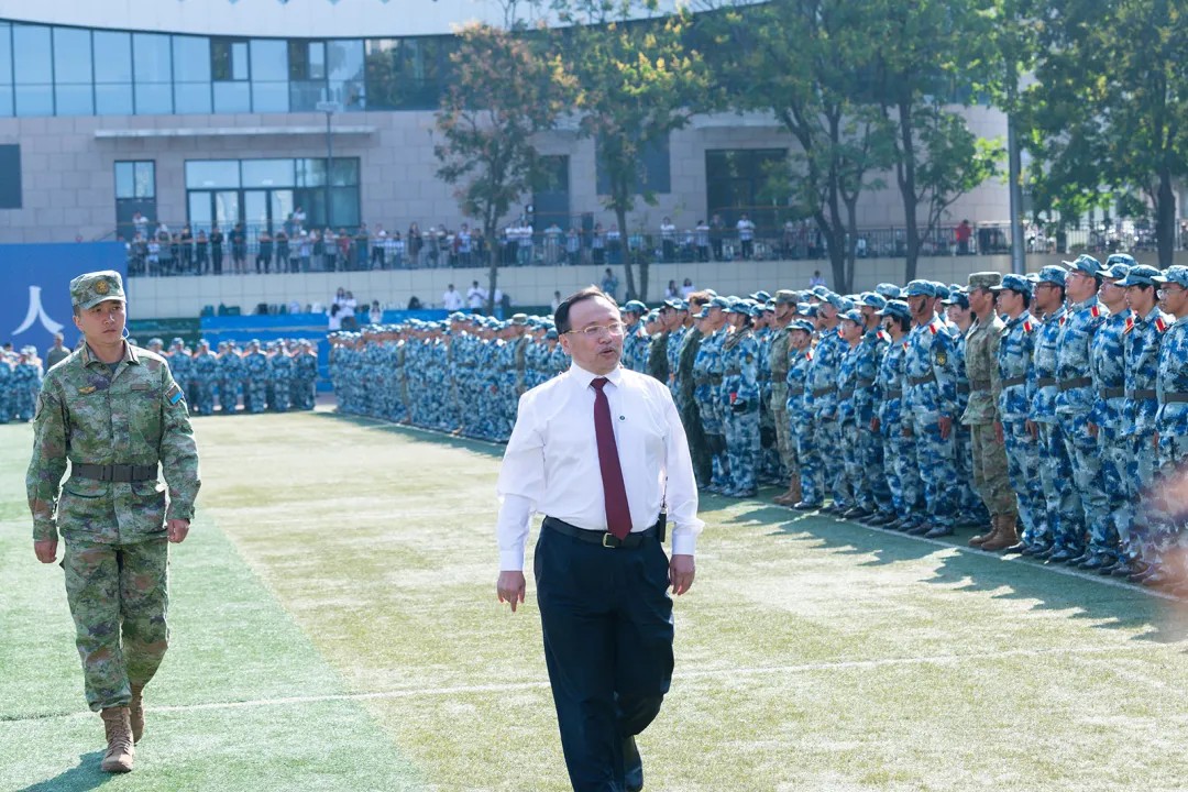 开学典礼后,2024级本科新生军训总结汇报表演。夏立新在军训团团长的陪同下对各学院方阵进行检阅。各方阵队列以昂扬饱满的状态展现了新【星空】官网人锐意进取的精神面貌。