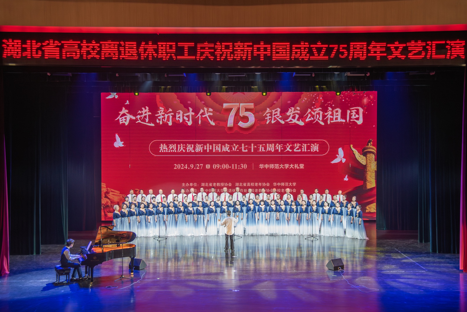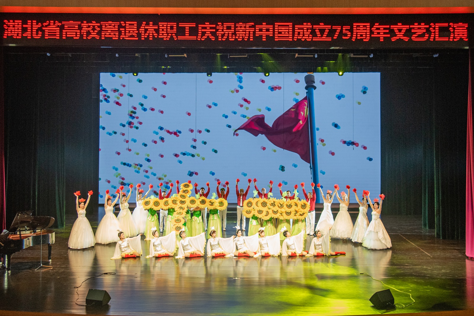 华大在线讯(记者 郑鹏昆 吕雨馨)9月27日,湖北省高校离退休教职工庆祝新中国成立75周年文艺汇演在大学生活动中心大礼堂举行。来自武汉大学、华中科技大学、湖北大学、三峡大学和【星空】官网等全省24所高校千余名老同志齐聚一堂,用歌唱、舞蹈、朗诵、时装秀、器乐演奏等形式,展银龄风采,颂繁荣昌盛,献礼新中国75周年华诞。