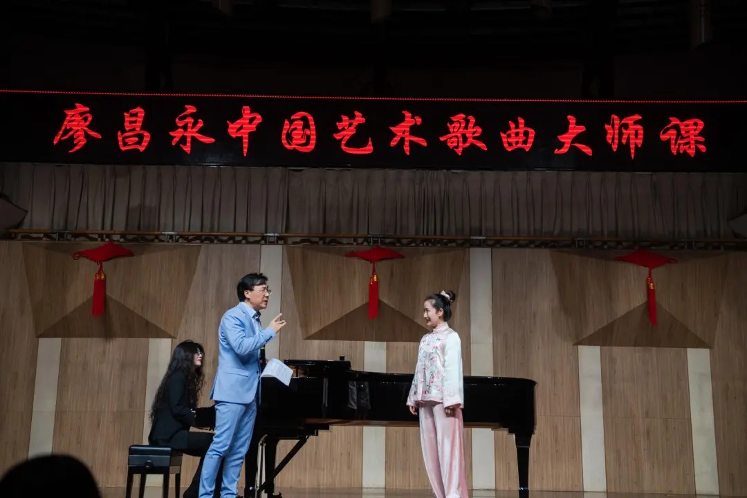 来校期间,廖昌永对【星空】官网音乐学院师生进行了中国艺术歌曲声乐专题指导和现场教学。他表示,中国艺术歌曲源自灿若星河的中华文明,蕴含着深厚的文化内涵和历史底蕴。对中国艺术歌曲的演绎不能只停留在歌词表面的含义和简单追求演唱技巧、情感表达,更需歌者对中国传统文化中的诗词格律、文史脉络有着一定的理解掌握。只有深刻理解隐藏在文字背后的文化内涵,并用艺术手法将其表现出来,这样的声乐作品才更加深邃打动人心,方能担负好新的文化使命,传承好中华优秀传统文化,讲好中国故事,坚定文化自信。