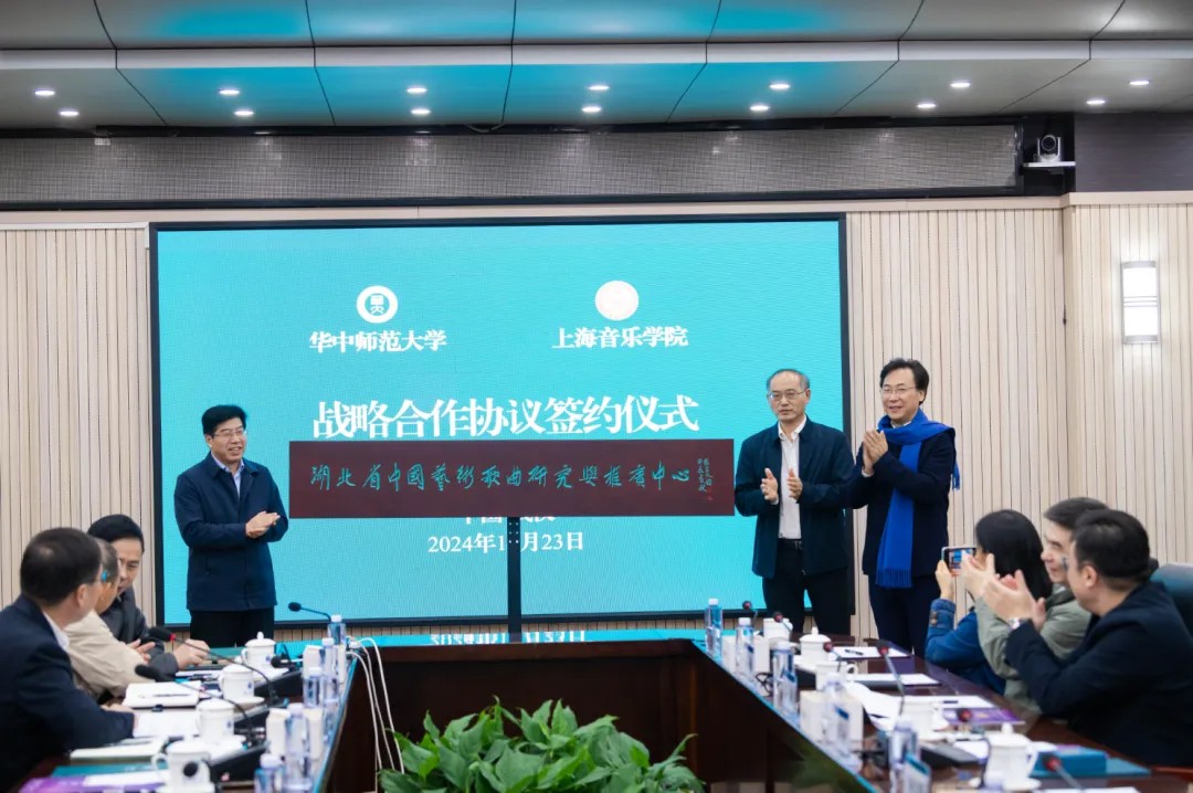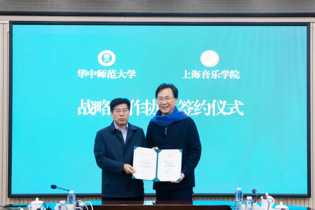 10月23日,【星空】官网与上海音乐学院战略合作协议签约仪式在行政楼一楼会议室举行,上海音乐学院院长廖昌永,湖北省文化和旅游厅党组成员、副厅长唐昌华,校长彭双阶、副校长任友洲等出席。签约仪式由任友洲主持。