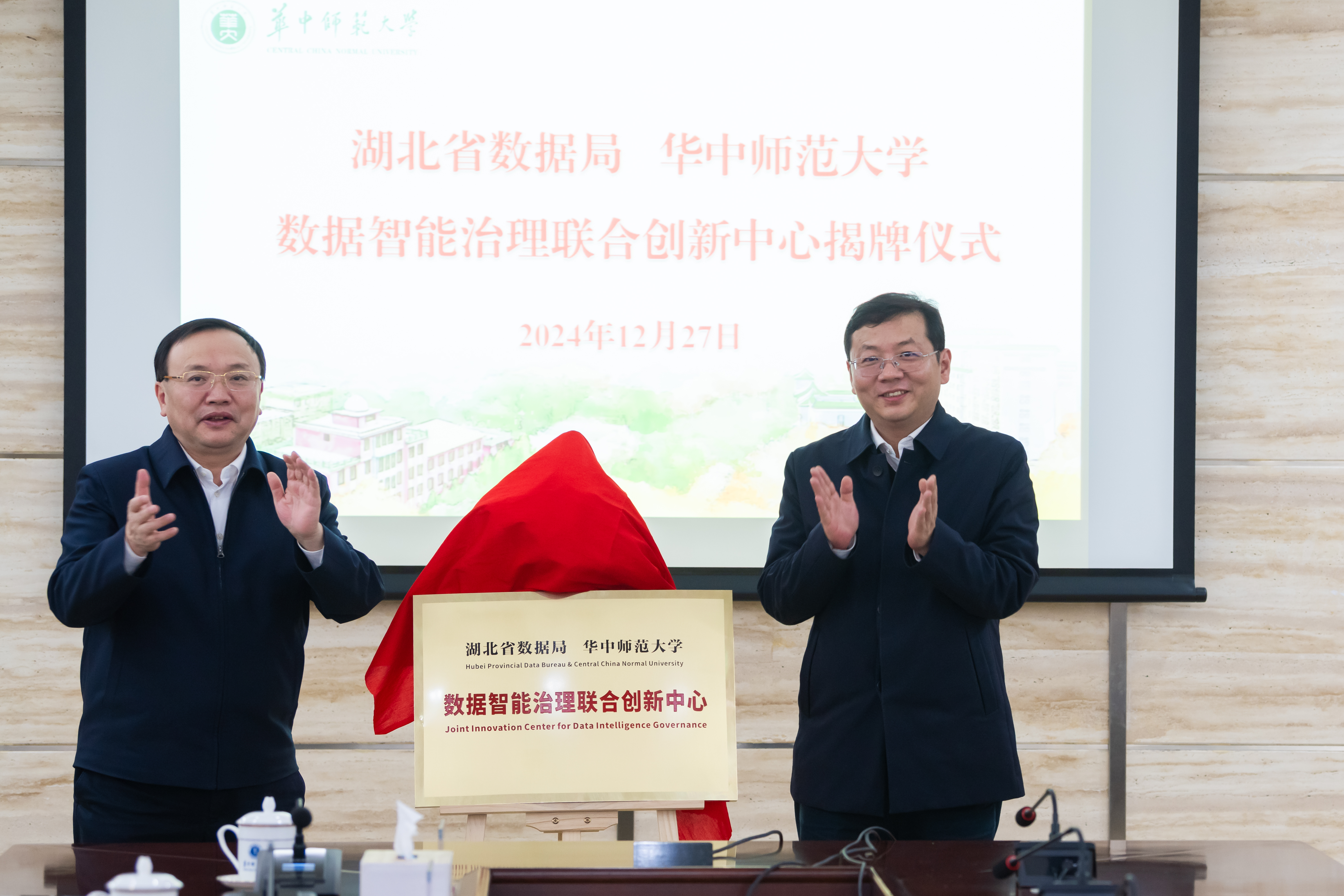 湖北省数据局、湖北省大数据中心、湖北省数据集团等相关单位负责人,学校办公室、发展规划处、社科处、信息化办公室等职能部门以及人工智能教育学部、计算机学院、信息管理学院、经济与工商管理学院等教学科研单位的负责同志和教师代表参加揭牌仪式。