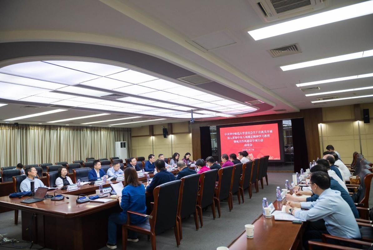 华大在线讯(通讯员 徐丽)4月11日,机关党委深入贯彻中央八项规定精神学习教育暨机关作风建设专项行动动员会在逸夫国际会议中心召开。校党委书记夏立新、机关党委各党支部书记及相关单位负责人参会,会议由校党委副书记陈迪明主持。