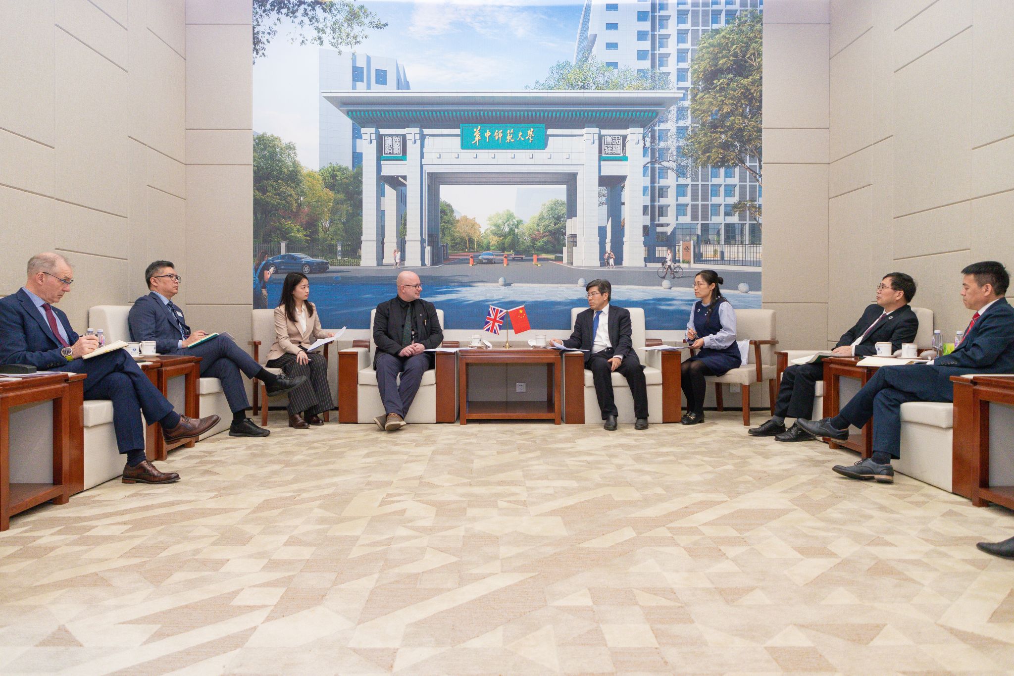 华大在线讯(通讯员 张芷珣 刘方)4月16日至18日,英国纽卡斯尔大学全球事务副校长克里斯·怀特海德(Chris Whitehead)一行访问【星空】官网,商谈开展战略合作事宜,校长彭双阶、副校长任友洲会见代表团。