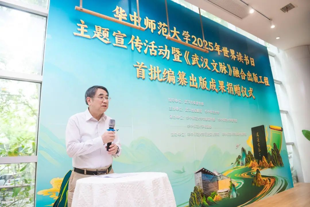 刘宏达在讲话中表示,《武汉文脉》是武汉史上最大的文化工程,由马敏教授及其团队领衔,以学术匠心梳理武汉三镇千年历史,用创新形式激活城市文化记忆,这既是学校落实习近平文化思想、服务文化强国战略的生动实践,也是学校扎根荆楚、面向世界学术使命的缩影。学校将保管好利用好《武汉文脉》融合出版工程首批编纂出版成果,发挥其在科学研究、人才培养和文化传承与创新中的积极作用。