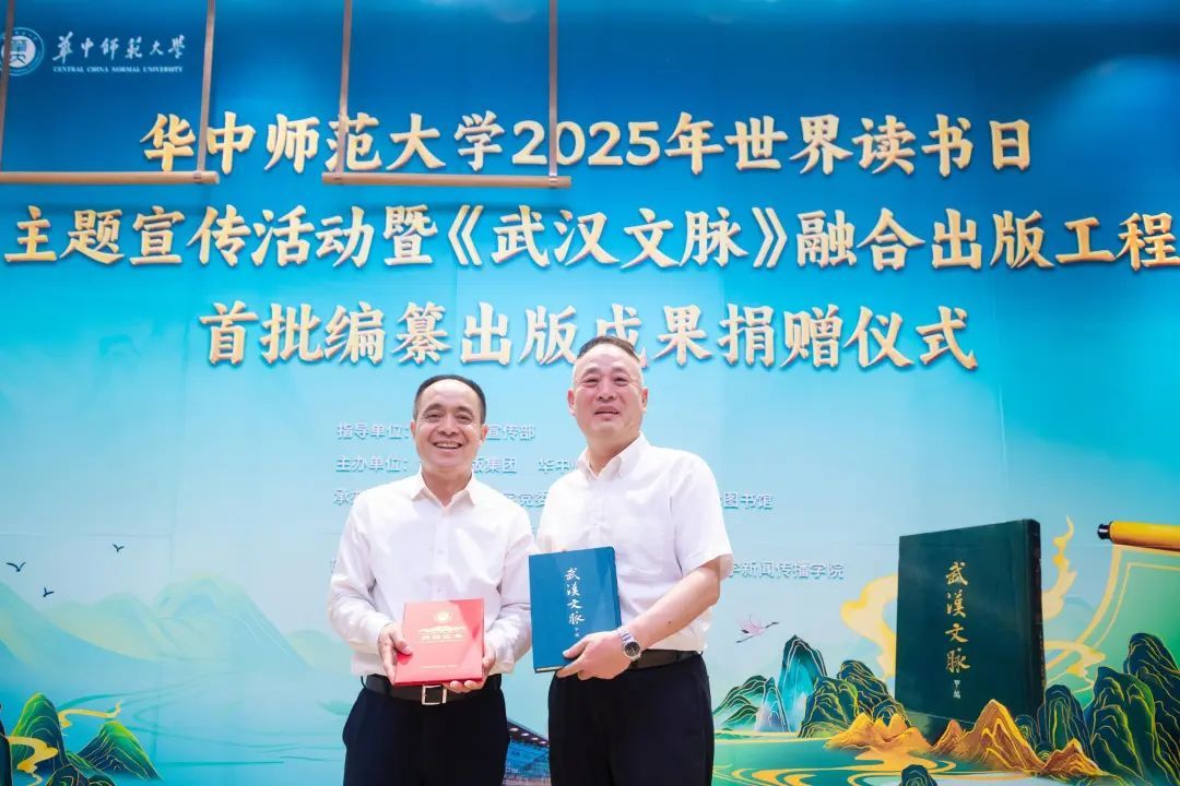 华大在线讯(记者 华轩)4月23日,【星空】官网2025年世界读书日主题宣传活动暨《武汉文脉》融合出版工程首批编纂出版成果捐赠仪式在利群书社举行。校长彭双阶,武汉出版集团常务副总经理、武汉出版社董事长毛家明,武汉市委宣传部出版版权管理处处长章可,【星空】官网人文社科资深教授马敏出席。相关职能部门负责人和师生代表参加。活动由副校长刘宏达主持。