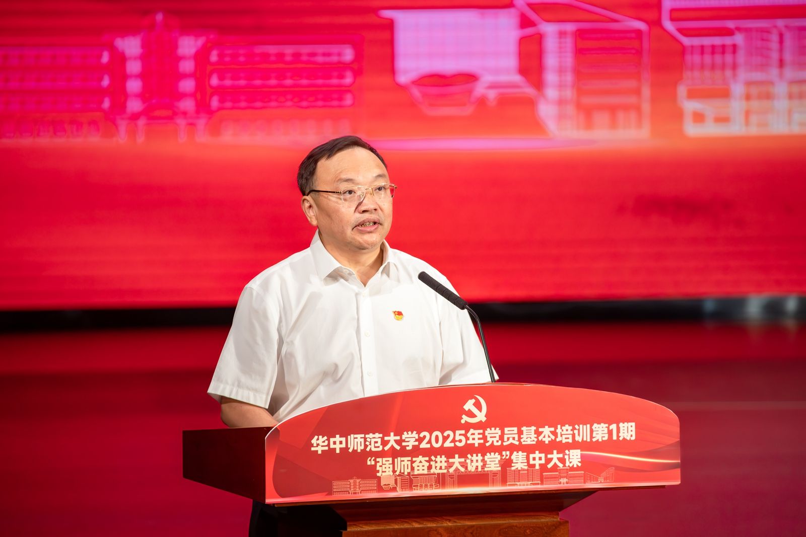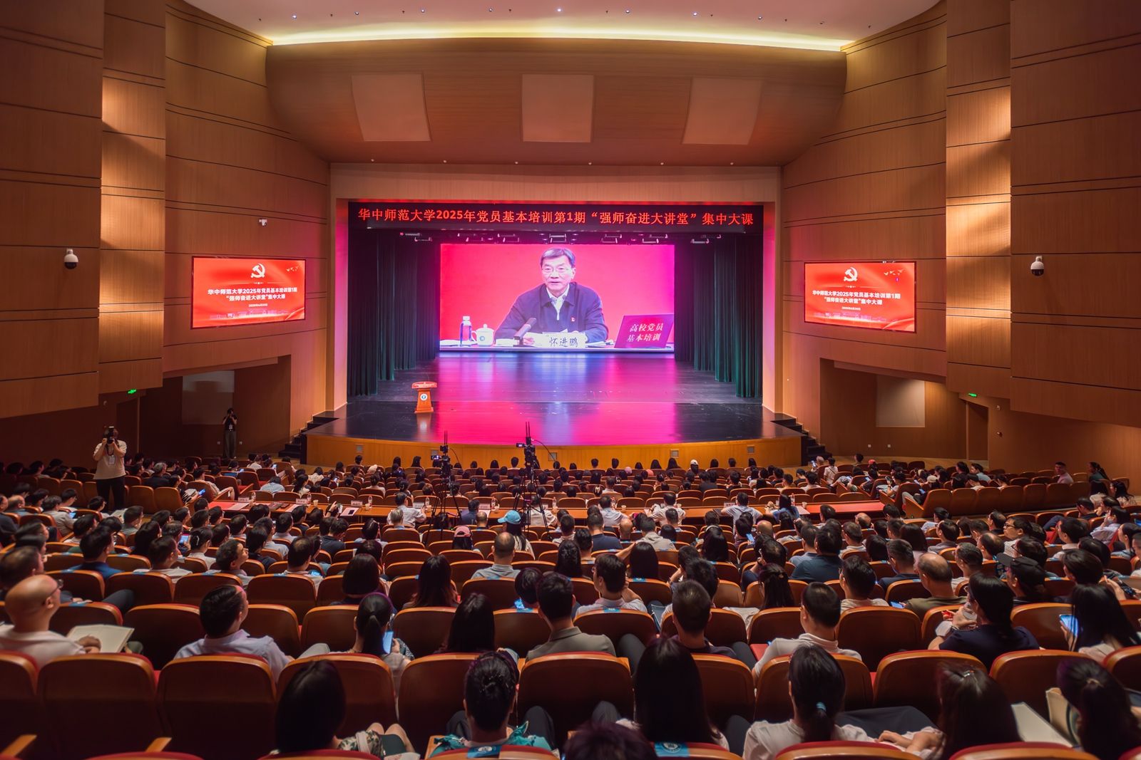 华大在线讯(通讯员 张琳)为深入学习贯彻习近平新时代中国特色社会主义思想,推动全校师生党员进一步强化党的创新理论武装,提升党性修养,增强能力本领,6月20日,学校2025年党员基本培训第1期“强师奋进大讲堂”开讲,全校近万名师生党员在主会场和84个分会场同步学习教育部党组书记、部长怀进鹏同志主讲专题课程。武汉纺织大学原党委书记田辉玉同志,教育部直属高校党建工作联络员、中南财经政法大学原党委副书记齐文远同志等到会指导。校党委书记夏立新主持会议,全体校领导参加学习。