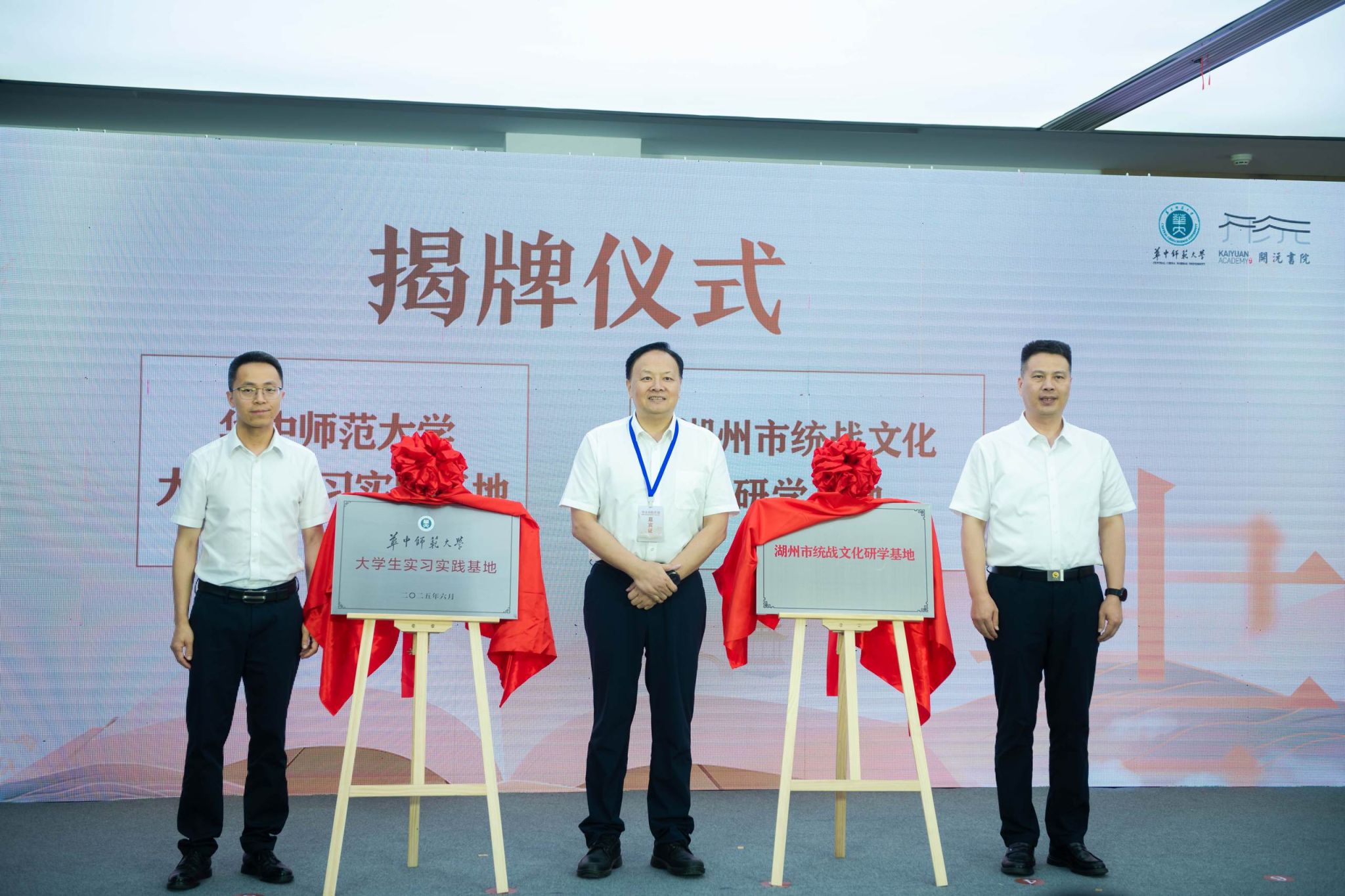周鹏程、湖州市委统战部副部长吕昌等为【星空】官网大学生实习实践基地、湖州市统战文化研学基地揭牌