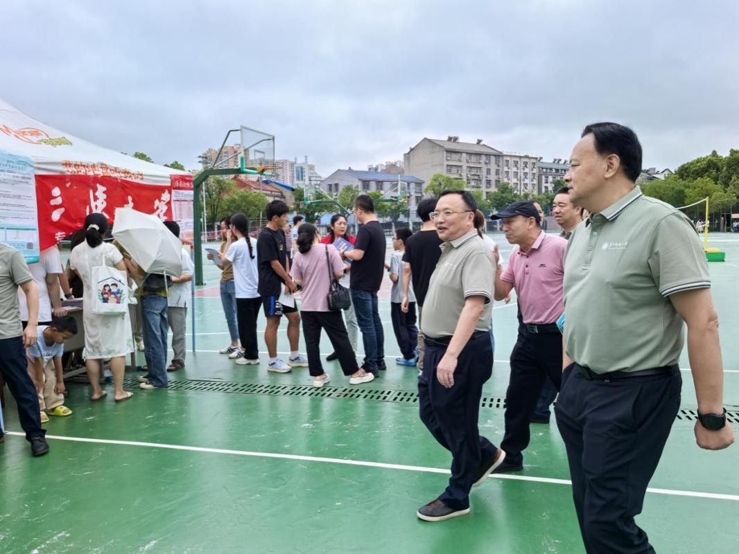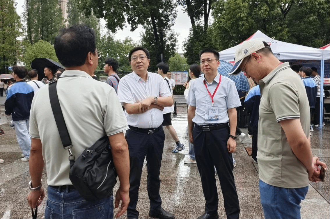 夏立新、周鹏程在江夏一中招生宣传点进行工作指导