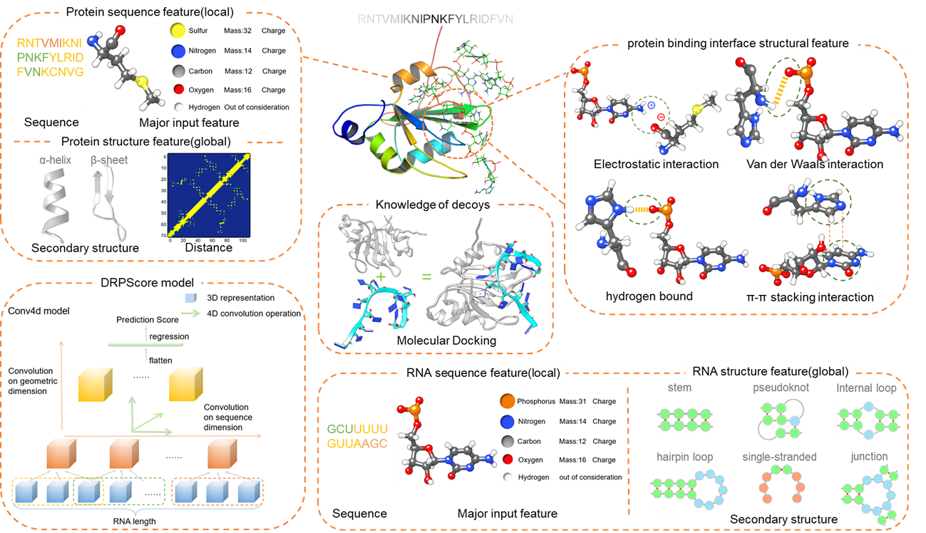 图1. DRPScore模型训练中学习的RNA-蛋白质复合物特征与4DCNN深度学习模型